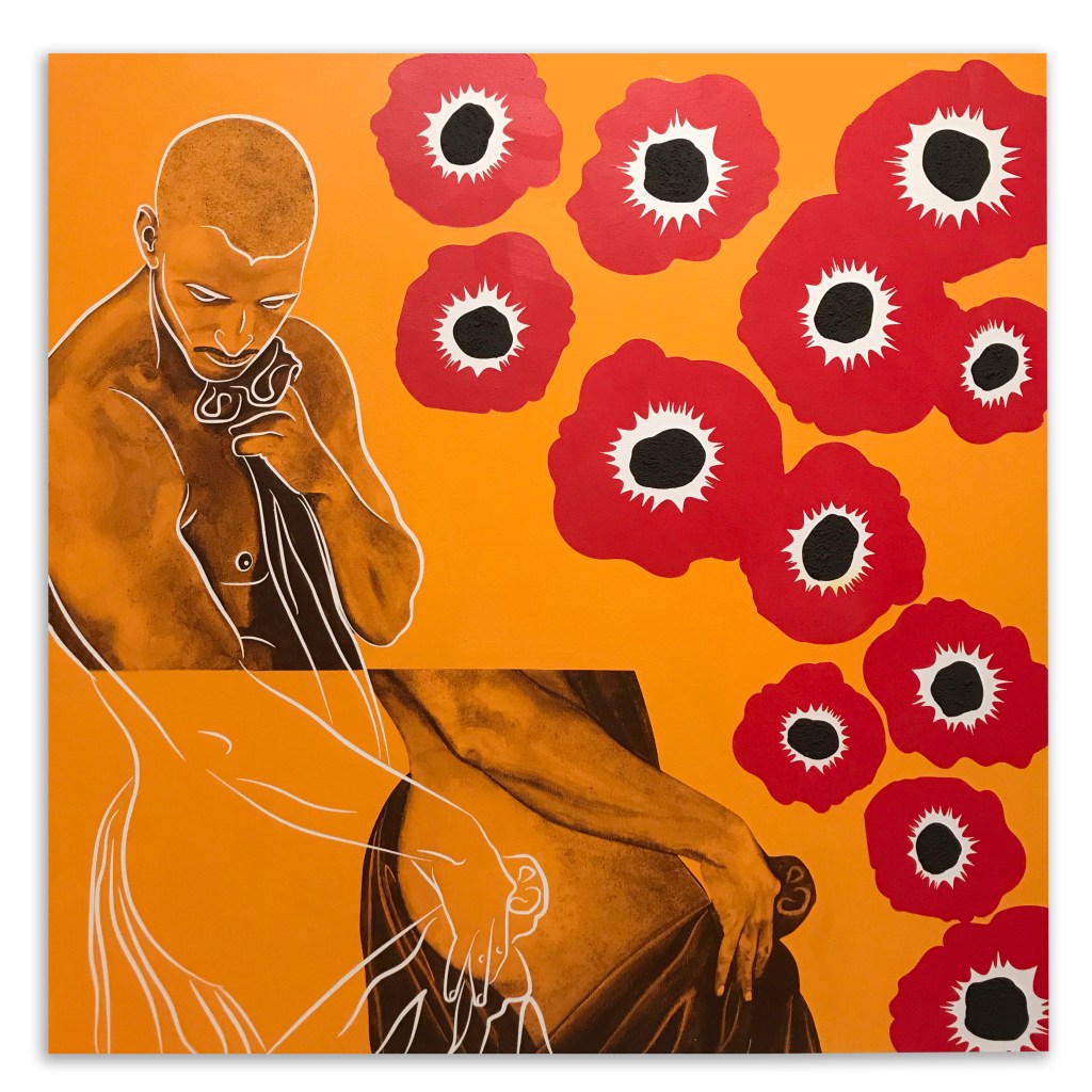 “Frot,” 2021, acrylic gouache on canvas, 30″ X 30″“Hunger,” 2021, acrylic on canvas, 30″ X 30″“Grindr,” 2021, acrylic on canvas, 30″ X 30″“Love Story” 2021, acrylic on canvas, 30″ X 30″ (triptych panel)“Love Story” 2021, acrylic on canvas, 30″ X 30″ (triptych panel)“Love Story” 2021, acrylic on canvas, 30″ X 30″ (triptych panel)“Pearl Necklace” 2021, acrylic on canvas, 30″ X 30″“Pan Ascending” 2020, acrylic on canvas, 30″ X 30″ “Crossed Paths” 2021, acrylic on canvas, 24″ X 24″“Trade” 2021, acrylic on canvas, 24″ X 24″ “Wants/Needs” 2021, acrylic on canvas, 24″ X 24″“Foothold” 2020, acrylic on canvas, 30″ X 30″“Male Gaze 2″ 2020, acrylic on canvas, 30″ X 30”“We Speak For Our Ancestors” 2020, acrylic on canvas, 30″ X 30″“Facing Onself” 2020, acrylic on canvas, 30″ X 30″“Parallel Lives” 2020, acrylic on canvas, 30″ X 30″“Twogether” 2020, acrylic on canvas, 30″ X 30″“Adonis and Anemones” 2020, acrylic on canvas, 30″ X 30″“Skin Deep,” 2020, acrylic on canvas, 30″ X 30″ “Male Gaze” 2020, acrylic on canvas, 30″ X 30″