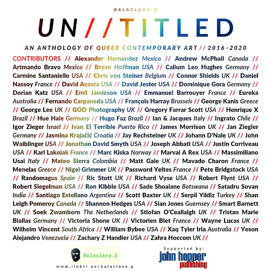 UN//TITLED: An Anthology of Queer Contemporary Art (2016 – 2020) I will be a featured artist along with 75 other queer artists being published in April 2021 by Balaclava.Q (John Hopper Publishing)