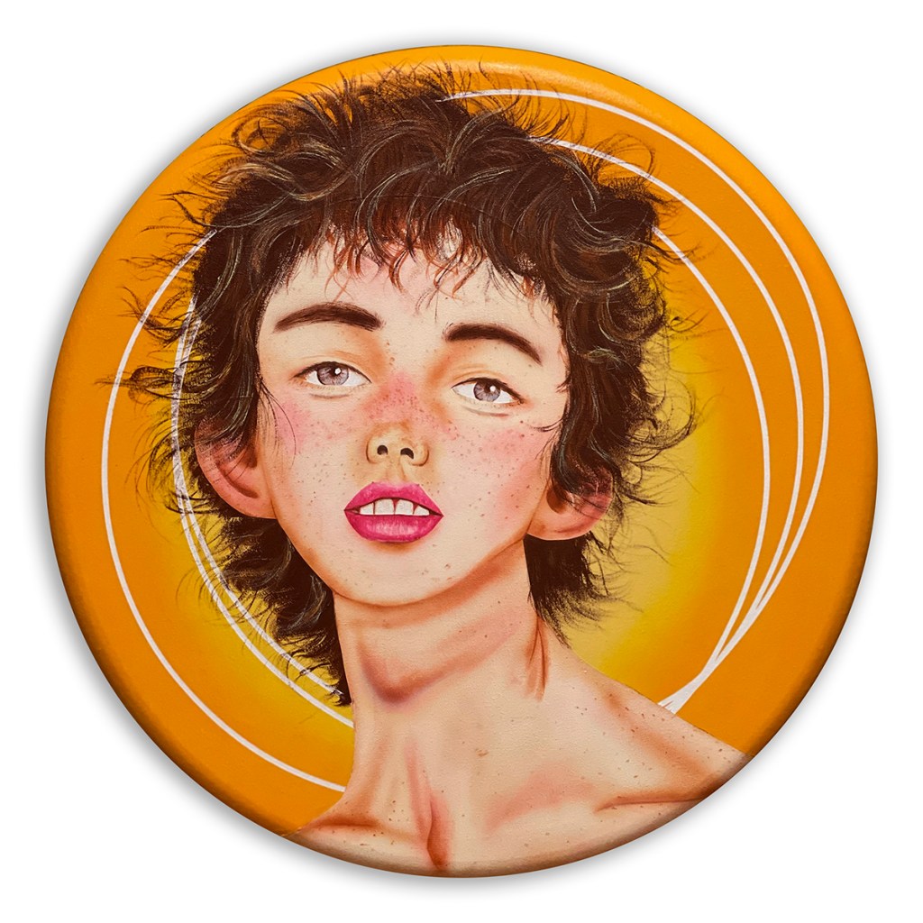 “Waif,” 2021, acrylic on canvas, 24″ tondo